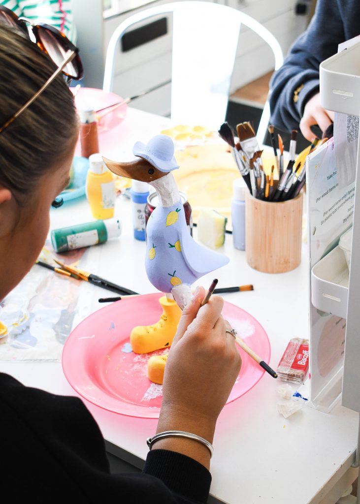 Whether you choose pottery painting or our signature wooden ducks, you will enjoy a calm, elegant studio experience with guidance, materials, refreshments and your finished creation to take home the same day.