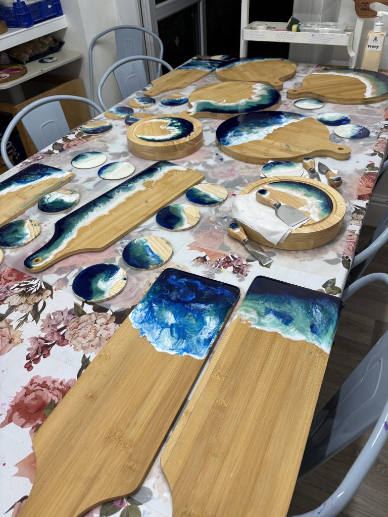 Resin Chopping Board workhop at arty boat exmouth